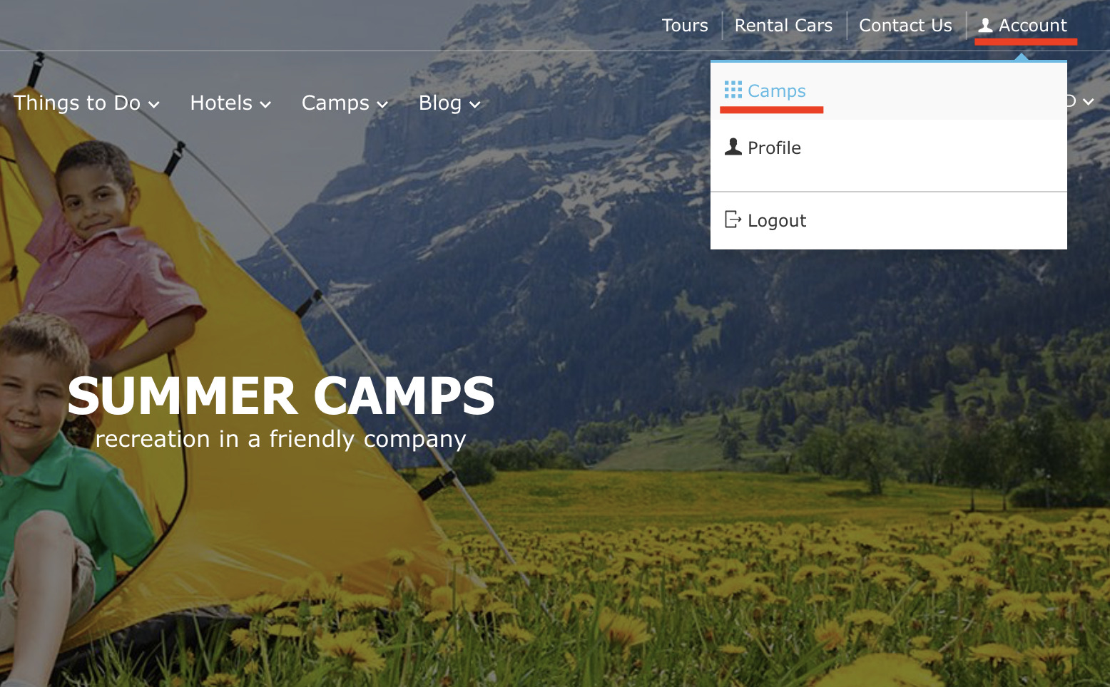 Head to the top right corner and click Account > Camps.