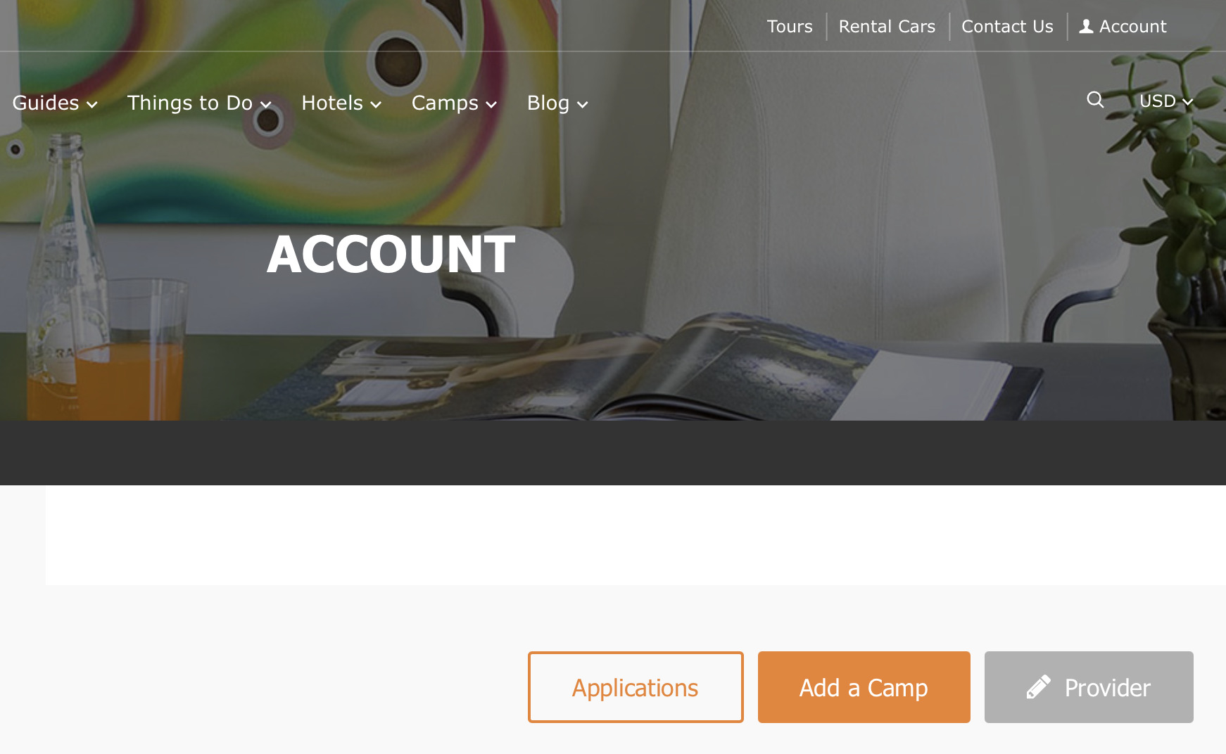 Kickstart your journey by registering on Kidvoyage. In the top right corner, click Account, to access the Log In screen.