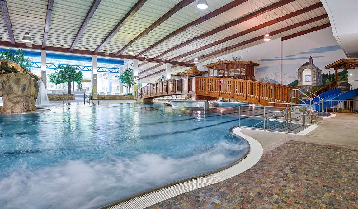 Secondly, after the frost it is so nice to warm up in the pools of the Freizeit Arena Complex. There is a paddling pool for children in the complex, but wouldn't it be interesting for a child to swim with their parents in an artificial cave or under a waterfall? Freizeit Arena also has indoor sports facilities, tennis courts and bowling alleys.